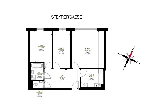 | Auf einer Wohnfläche von ca. 71m² verteilen sich in der Steyrergasse (auf Höhe der Conrad-von-Hötzendorf-Straße) nähe Campus Neue TU-Graz im 3. Obergeschoß mit Lift erreichbar perfekt wie | |||