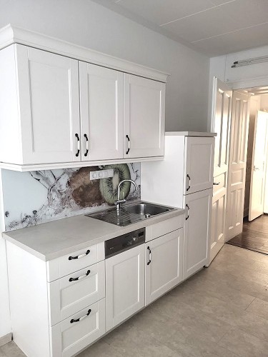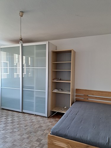 Wohnung im Dachgeschoß Top 4. Neue Küche, Einbauschrank und Bettgestell (ohne Lattenrost, ohne Matratze) im Schlafzimmer