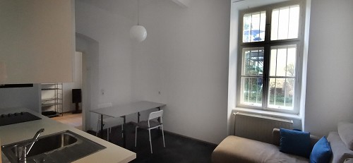 Nähe Universität, Stadtpark, Innenstadt; zentrale, sehr ruhige Lage im Innenhof; direkt beim Margarethenbad und einer Bushaltestelle; vollständig möbliert (inkl. Bettwäsche, Handtücher, Küchenutensilien).