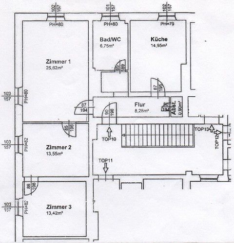 Die Wohnung besteht aus Vorraum, 3getrennt begehbaren Zimmern, einer großen Küche mit Sitzecke, Speis, Bad und getrenntem WC.