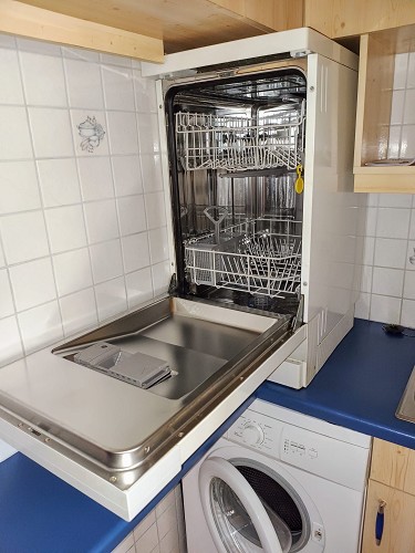 3 Zimmer (unmöbliert), Wohnzimmer teilmöbliert (Essgarnitur), Parkettböden, Dusche,  Waschmaschine, WC, Einbauküche mit Geschirrspüler.